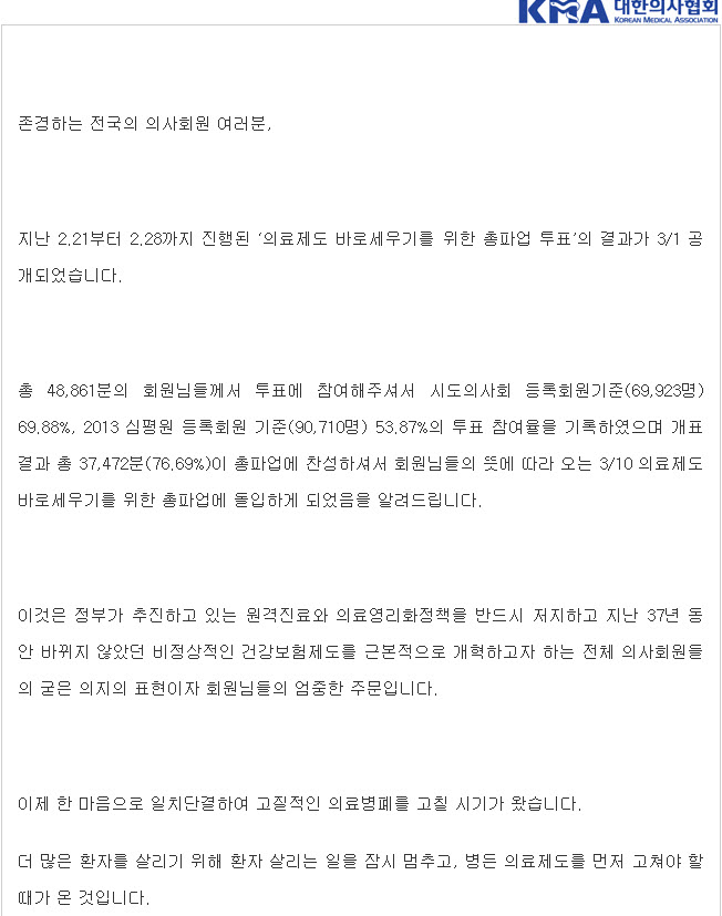 ´ëÇÑÀÇ»çÇùȸ¿¡ ¿À´Â 3¿ù 10ÀÏ ÀÇ·áÁ¦µµ ¹Ù·Î¼¼¿ì±â¸¦ À§ÇÑ ÃÑÆÄ¾÷°ü·Ã °øÁö¹®ÀÌ ÀÖ¾î ¾È³»Çص帳´Ï´Ù.