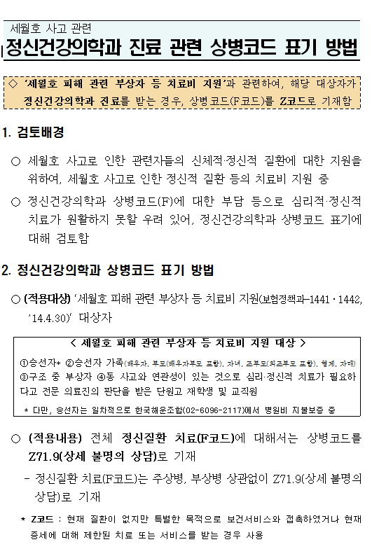 ¡Ø°ü·Ã±Ù°Å: º¸Çè±Þ¿©°ú-1428(2014.5.14) ¡°¼¼¿ùÈ£ ºÎ»óÀÚ µîÀÇ Ä¡·áºñ Áö¿ø °ü·Ã Á¤½Å°Ç°­ÀÇÇаú Áø·á½Ã »óº´ÄÚµå Ç¥±â ¹æ¹ý ¾È³»¡±