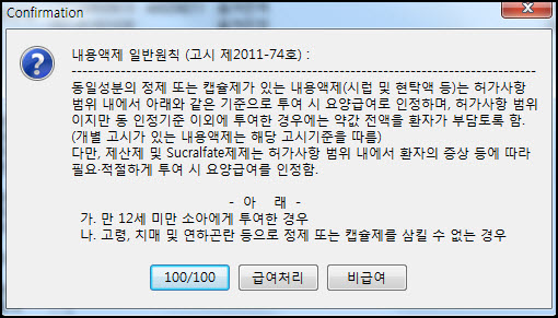 ¢¹ À¯¿¹±â°£ÀÌ Áö³ ½ÃÁ¡ÀÓ 11¿ù 1ÀÏ Áø·á½Ã ºÎÅÍ´Â ¿òÄ«¹ÎÁ¤°ú µ¿ÀϼººÐÀÇ Á¤Á¦ ¶Ç´Â ĸ½¶Á¦°¡ Àִ°æ¿ì, ±Þ¿©ÀÎÁ¤¿©ºÎ¸¦ ¼±ÅÃÇÏ´Â ÆË¾÷âÀÌ ¾Æ·¡¿Í °°ÀÌ ¶ß°ÔµË´Ï´Ù.
