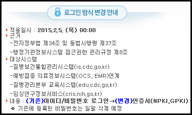 2015³â 2¿ù 5ÀϺÎÅÍ Áúº´º¸°ÇÅëÇÕ°ü¸®½Ã½ºÅÛÀÌ ¾ÏÈ£Èü°è °íµµÈ¿¡ µû¶ó ·Î±×Àιæ½ÄÀÌ º¯°æµË´Ï´Ù.