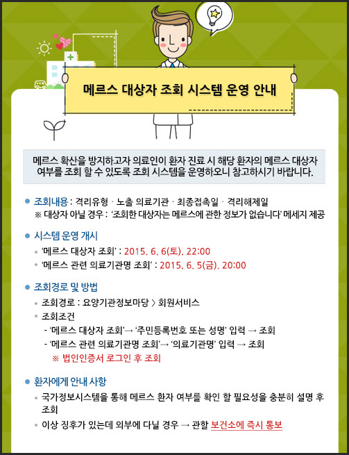 << ¸Þ¸£½º ( MERS) ȯÀÚ  ¼öÁøÀÚ Á¶È¸½Ã Ç¥½Ã ¾È³»>>