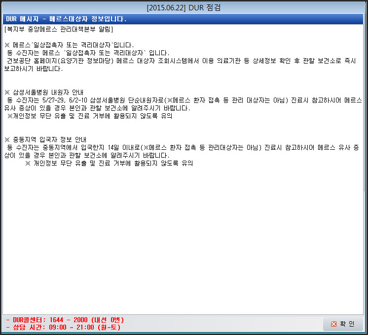 DUR Á¡°Ë½Ã ¸Þ¸£½º °ü·Ã Á¤º¸Ç¥½Ã´Â ´ë»óÀÚÀÏ °æ¿ì, ¾Æ·¡¿Í °°Àº ³»¿ëÀ¸·Î ÆË¾÷âÀÌ ¶å´Ï´Ù.