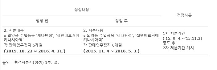 2. »ó±âû °ü³» ¾à»ç¹ý À§¹Ý ¾÷ü¿¡ ´ëÇÏ¿© ¾Æ·¡¿Í °°ÀÌ ÇàÁ¤Ã³ºÐ ³»¿ëÀÌ Á¤Á¤ÇÏ¿´À½À» ¾Ë·Áµå¸³´Ï´Ù.