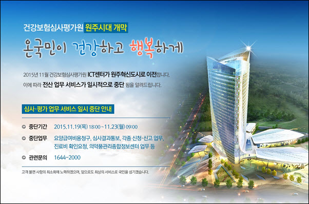½É»çÆò°¡¿ø ȨÆäÀÌÁö¿¡  ¼¾ÅÍ ¿øÁÖÀÌÀü°ü°è·Î ½É»ç Æò°¡¾÷¹«(Àü»ê¾÷¹«) ¼­ºñ½º ÀϽà ÁßÁö ¾È³»°¡ÀÖ¾î °í½ÃÇØµå¸³´Ï´Ù .