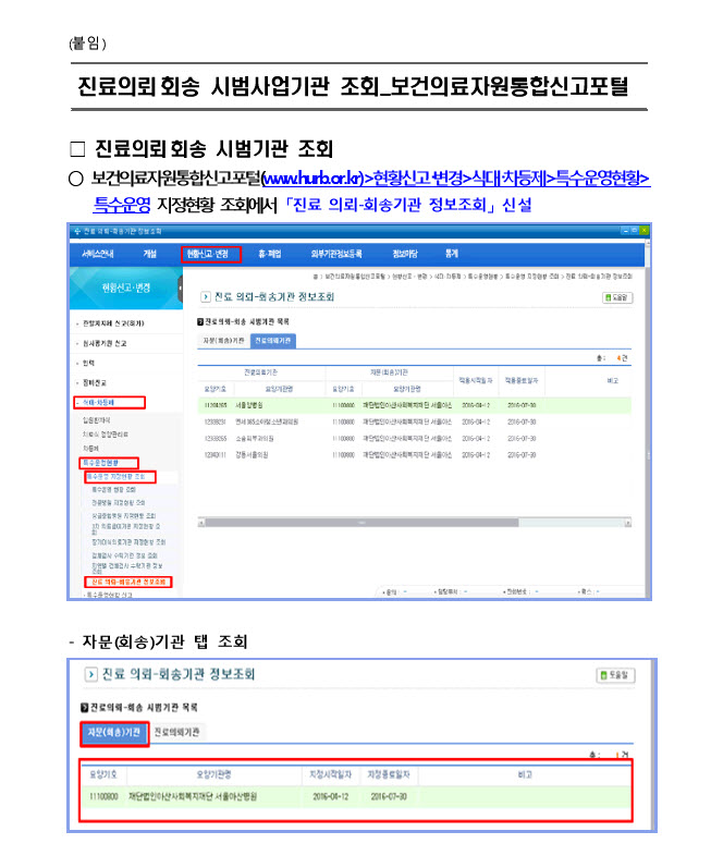 ¡Û Áø·áÀÇ·Ú․ȸ¼Û ½Ã¹ü»ç¾÷ ÁöħÅ뺸(º¸°Çº¹ÁöºÎ º¸Çè±Þ¿©°ú-1625, ¡®16.4.15)¿¡ µû¶ó Áø·á ÀÇ·Ú-ȸ¼Û±â°ü Á¶È¸ ȸéÀÌ ½Å¼³µÇ¾úÀ¸´Ï È®ÀÎÇÏ¿© Áֽñ⠹ٶø´Ï´Ù.
