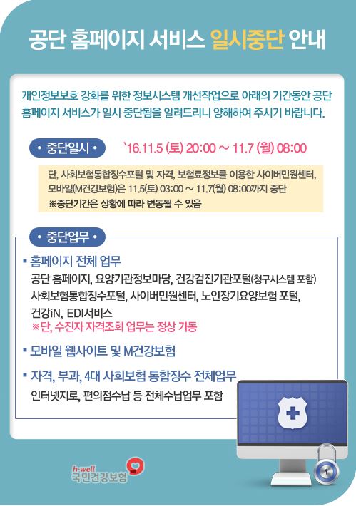 [°ø´Ü]±¹¹Î°Ç°­º¸Çè°ø´Ü ȨÆäÀÌÁö ¼­ºñ½º ÀϽÃÁß´Ü ¾È³»