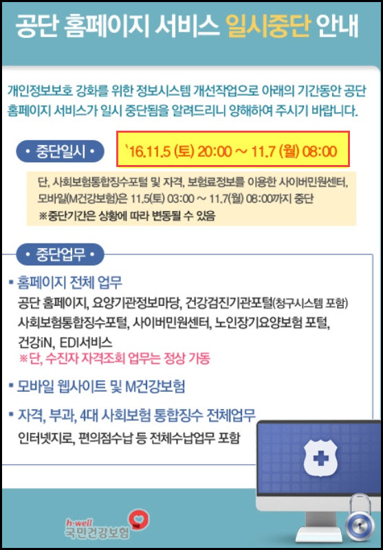 ±¹¹Î°Ç°º¸Çè°ø´Ü ȨÆäÀÌÁö¿¡ ¿ä¾ç±â°üÁ¤º¸¸¶´ç µî ȨÆäÀÌÁö ¼ºñ½º ÀϽà Áß´Ü ¾È³»°¡ ÀÖ¾î °í½ÃÇØµå¸³´Ï´Ù.