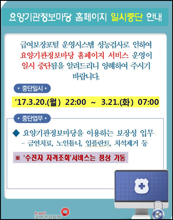 [¾È³»]¿ä¾ç±â°üÁ¤º¸¸¶´ç ȨÆäÀÌÁö 17.3.20(¿ù)~3.21(È­) ÀϽÃÁߴܾȳ»
