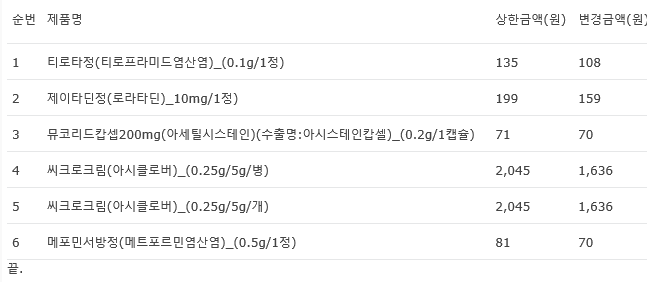 2. º¸°Çº¹ÁöºÎ´Â ¼¿ïÇàÁ¤¹ý¿øÀÇ 2017³â 4¿ù 28ÀÏÀÚ °áÁ¤À¸·Î ¡¸¾àÁ¦ ±Þ¿© ¸ñ·Ï ¹× ±Þ¿© »óÇѱݾ×Ç¥¡¹(º¸°Çº¹ÁöºÎ °í½Ã Á¦2017-72È£, 2017.4.21.)ÀÇ º°Áö 3 Áß ¾Æ·¡ÀÇ ÀǾàǰ¿¡ ´ëÇÑ °í½Ã È¿·ÂÀÌ Á¤ÁöµÊ¿¡ µû¶ó 2017³â 5¿ù 1ÀÏ ÀÌÈÄ¿¡µµ º¯°æÀü »óÇѱݾ×À¸·Î À¯ÁöµÊÀ» ¾Ë·Á¿Â ¹Ù ¾È³»ÇÕ´Ï´Ù.