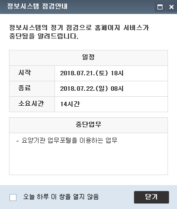 °Ç°­º¸Çè½É»çÆò°¡¿ø ȨÆäÀÌÁö¿¡  ¿ä¾ç±â°ü¾÷¹«Æ÷ÅÐ Á¤º¸½Ã½ºÅÛ Á¡°Ë ¾È³»°¡ ÀÖ¾î °Ô½ÃÇÕ´Ï´Ù.
