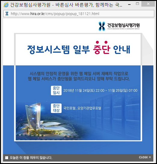 °Ç°­º¸Çè½É»çÆò°¡¿ø ȨÆäÀÌÁö¿¡  Á¤º¸½Ã½ºÅÛ ÀϺΠÁß´Ü ¾È³»°¡ ÀÖ¾î °Ô½ÃÇÕ´Ï´Ù.