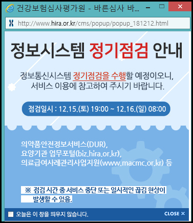 ¾È³çÇϼ¼¿ä. ´Ù¼Ø¸ÞµðÄÉ¾î °ü¸®ÀÚÀÔ´Ï´Ù. °Ç°º¸Çè½É»çÆò°¡¿ø ȨÆäÀÌÁö¿¡ 2018.12.15(Åä)~2018.12.16(ÀÏ) Á¤º¸½Ã½ºÅÛ Á¤±âÁ¡°Ë ¾È³» °¡ ÀÖ¾î °Ô½ÃÇÕ´Ï´Ù. °ü·Ã¾÷¹«¿¡ Âü°íÇϽñ⠹ٶø´Ï´Ù.