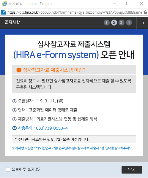 ¾È³çÇϼ¼¿ä. ´Ù¼Ø¸ÞµðÄÉ¾î °ü¸®ÀÚÀÔ´Ï´Ù. °Ç°º¸Çè½É»çÆò°¡¿ø ȨÆäÀÌÁö¿¡ ½É»çÂü°íÀÚ·áÁ¦Ãâ½Ã½ºÅÛ(HIRA e-Form system)¿ÀÇ ¾È³»°¡ ÀÖ¾î °Ô½ÃÇÕ´Ï´Ù. °ü·Ã¾÷¹«¿¡ Âü°íÇϽñ⠹ٶø´Ï´Ù.