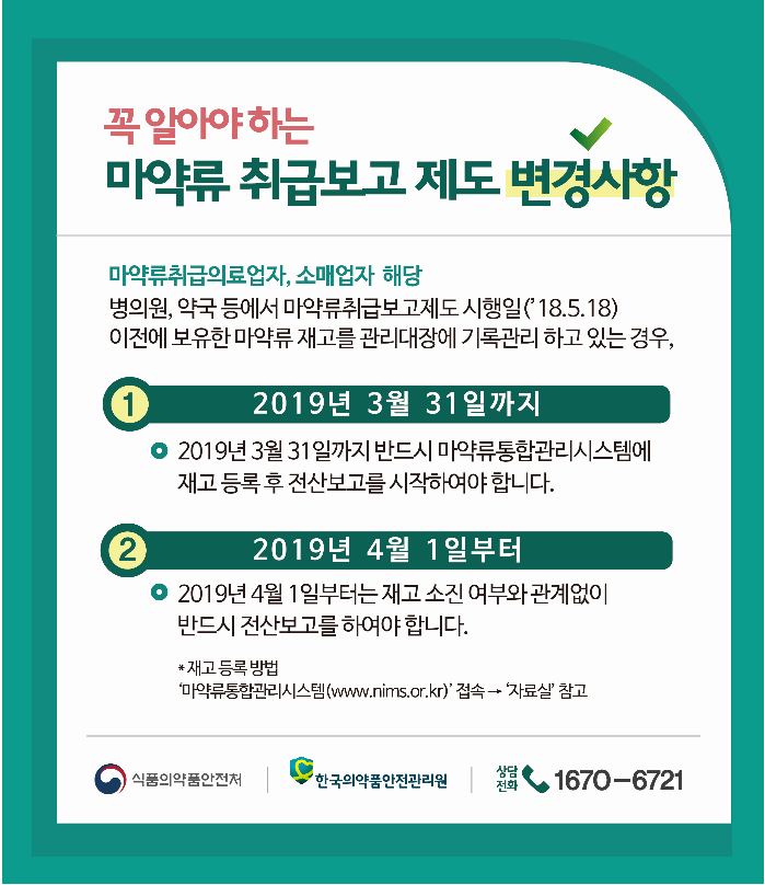 2019³â 3¿ù 31ÀϱîÁö´Â ±âÁ¸ Àç°í¸¦ ¹Ýµå½Ã ¸¶¾à·ùÅëÇÕ°ü¸®½Ã½ºÅÛ¿¡ µî·ÏÇϰí Àü»êº¸°í¸¦ ½ÃÀÛÇÏ¿©¾ß ÇÕ´Ï´Ù.