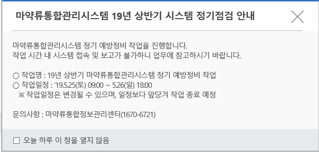 ¾È³çÇϼ¼¿ä. ´Ù¼Ø¸ÞµðÄÉ¾î °ü¸®ÀÚÀÔ´Ï´Ù. ¸¶¾à·ùÅëÇÕ°ü¸®½Ã½ºÅÛ È¨ÆäÀÌÁö¿¡ 2019³â05.25(Åä)~05.26(ÀÏ) »ó¹Ý±â ½Ã½ºÅÛÁ¤±âÁ¡°Ë ¾È³»°¡ ÀÖ¾î °Ô½ÃÇÕ´Ï´Ù. °ü·Ã¾÷¹«¿¡ Âü°íÇϽñ⠹ٶø´Ï´Ù.