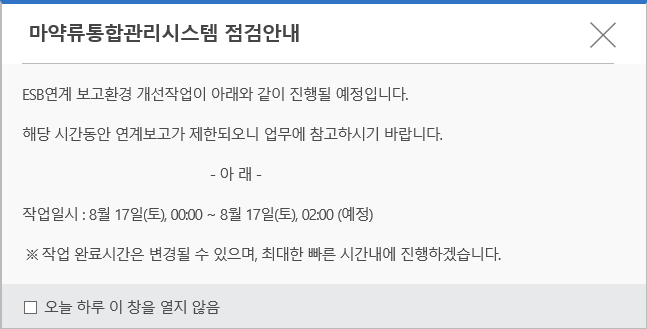 ¾È³çÇϼ¼¿ä. ´Ù¼Ø¸ÞµðÄÉ¾î °ü¸®ÀÚÀÔ´Ï´Ù. ¸¶¾à·ùÅëÇÕ°ü¸®½Ã½ºÅÛ È¨ÆäÀÌÁö¿¡ 2019.08.17(Åä) Á¡°Ë¾È³»°¡ ÀÖ¾î °Ô½ÃÇÕ´Ï´Ù. °ü·Ã¾÷¹«¿¡ Âü°íÇϽñ⠹ٶø´Ï´Ù.