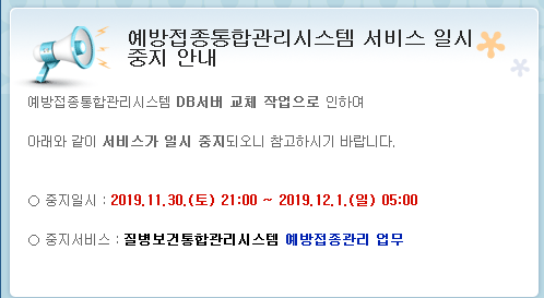 2019.11.30(Åä) 21½Ã~12.01(ÀÏ) 05½Ã±îÁö ¿¹¹æÁ¢Á¾ÅëÇÕ°ü¸®½Ã½ºÅÛ DB¼¹ö±³Ã¼ÀÛ¾÷ ¾È³»°¡ ÀÖ¾î °Ô½ÃÇÕ´Ï´Ù. °ü·Ã¾÷¹«¿¡ Âü°íÇϽñ⠹ٶø´Ï´Ù.