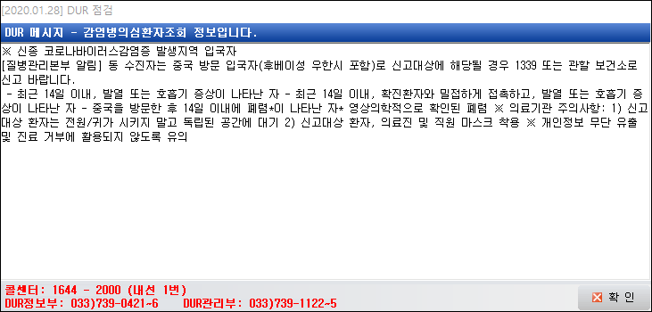 ½ÅÁ¾ Äڷγª¹ÙÀÌ·¯½º °¨¿°Áõ °ü·ÃÇÏ¿© ¹ß»ý±¹°¡(Áß±¹ µî) ¹æ¹®ÀÚ Á¤º¸¸¦ DUR½Ã½ºÅÛÀ» ÅëÇØ ¿ä¾ç±â°ü¿¡ Á¦°øÇϰí ÀÖ½À´Ï´Ù.