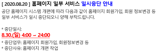 (½Å)¿ä¾ç±â°üÁ¤º¸¸¶´ç '20.08.30(ÀÏ) 04:00~24:00 ȨÆäÀÌÁö °³ÆíÀÛ¾÷À¸·Î ÀÎÇÑ ÀϽÃÁß´Ü ¾È³»°¡ ÀÖ¾î °Ô½ÃÇÕ´Ï´Ù.