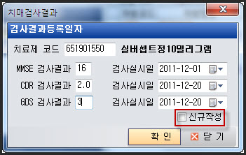 2. Ä¡·áÁ¦ÄÚµå Á¤º¸°¡ µé¾îÀÖ´Â ÀÔ·ÂâÀÌ ¶ß¸é, °Ë»ç°á°ú°ª°ú °Ë»ç½Ç½ÃÀÏÀ» ÀÛ¼ºÈÄ È®ÀιöưÀ» ´©¸¨´Ï´Ù. ÀÌÀü¿¡ °á°ú°ªÀ» ÀÔ·ÂÇßÀ¸¸é, ÃÖ±ÙÀÔ·ÂÇÑ °á°ú°ªÀÌ ÀÚµ¿À¸·Î ¶å´Ï´Ù °Ë»ç¸¦ ´Ù½Ã ÇÏÁö ¾Ê¾ÒÀ» °æ¿ì, È®Àιöư¸¸ ´©¸£¸é µË´Ï´Ù. (°Ë»ç¸¦ ´Ù½Ã ¹Þ¾ÒÀ» °æ¿ì, ½Å±ÔÀÛ¼º¿¡ üũÈÄ ÀÔ·Â)