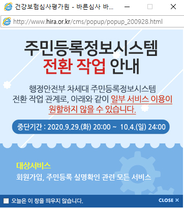 ¾È³çÇϼ¼¿ä. ´Ù¼Ø¸ÞµðÄÉ¾î °ü¸®ÀÚÀÔ´Ï´Ù. °Ç°º¸Çè½É»çÆò°¡¿ø ȨÆäÀÌÁö¿¡ 2020.09.29(È)20:00 ~ 10.04(ÀÏ) 24:00 ÁֹιøÈ£Á¤º¸½Ã½ºÅÛ Àüȯ ÀÛ¾÷ ¾È³»°¡ ÀÖ¾î °Ô½ÃÇÕ´Ï´Ù. °ü·Ã¾÷¹«¿¡ Âü°íÇϽñ⠹ٶø´Ï´Ù.
