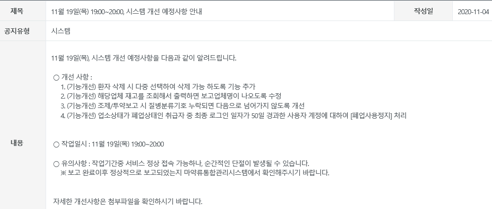 [¸¶¾à·ùÅëÇÕ°ü¸®½Ã½ºÅÛ] '20.11.19ÀÏ(¸ñ) 19:00~20:00, ½Ã½ºÅÛ °³¼± ¿¹Á¤»çÇ× ¾È³»