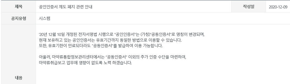 [¸¶¾à·ùÅëÇÕ°ü¸®] °øÀÎÀÎÁõ¼­ Á¦µµ ÆóÁö °ü·Ã ¾È³»