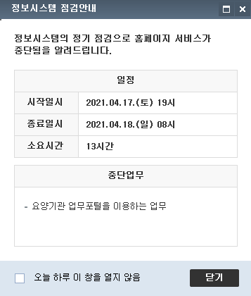 [½ÉÆò¿ø] '21.04.17(Åä) ~ 04.18(ÀÏ)Á¤º¸½Ã½ºÅÛ Á¡°Ë¾È³»