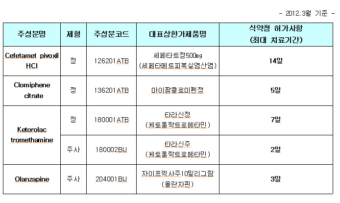 ¡Û ¿ì¸®¿øÀº ½Ä¾àû Çã°¡»çÇ׿¡ µû¶ó ÃÖ´ë Ä¡·á±â°£ÀÌ Á¦ÇѵǴ ÀϺΠ¾àÁ¦¿¡ ´ëÇÏ¿© 2012³â 10¿ù Á¢¼öºÐºÎÅÍ Àü»ê½É»ç¸¦ Àû¿ëÇÒ ¿¹Á¤ÀÔ´Ï´Ù.