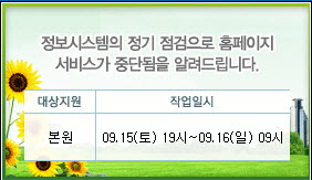½É»çÆò°¡¿ø¿¡¼ Á¤º¸½Ã½ºÅÛ Á¤±â Á¡°ËÀ¸·Î ÀÏÁ¤±â°£ ȨÆäÀÌÁö ¼ºñ½º°¡ Áߴܵȴٰí ÇÕ´Ï´Ù.