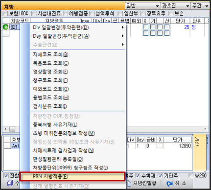 2)ó¹æ¾à¿¡¼ ¸¶¿ì½º ¿À¸¥ÂÊÀ» ´·¯ PRN󹿹ÌÀû¿ëÀ» Ŭ¸¯ÇÑµÚ Ã³¹æÀüÀ» ÀçÀúÀåÇÕ´Ï´Ù.