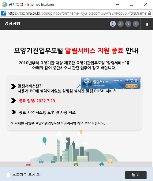 ½É»ç±âÁØ Á¾ÇÕ¼­ºñ½º¿¡  ¿ä¾ç±â°ü¾÷¹«Æ÷ÅÐ ¾Ë¸²¼­ºñ½º Áö¿øÁ¾·á ¾È³» °¡ ÀÖ¾î °Ô½ÃÇÕ´Ï´Ù.