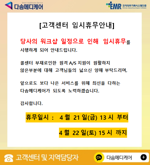 [°øÁö] °í°´¼¾ÅÍ ÀÓ½ÃÈÞ¹« 4¿ù 21ÀÏ(±Ý)13½ÃºÎÅÍ ¿öÅ©¼¥ ÀÏÁ¤À¸·Î ½Ç½ÃÇÕ´Ï´Ù.