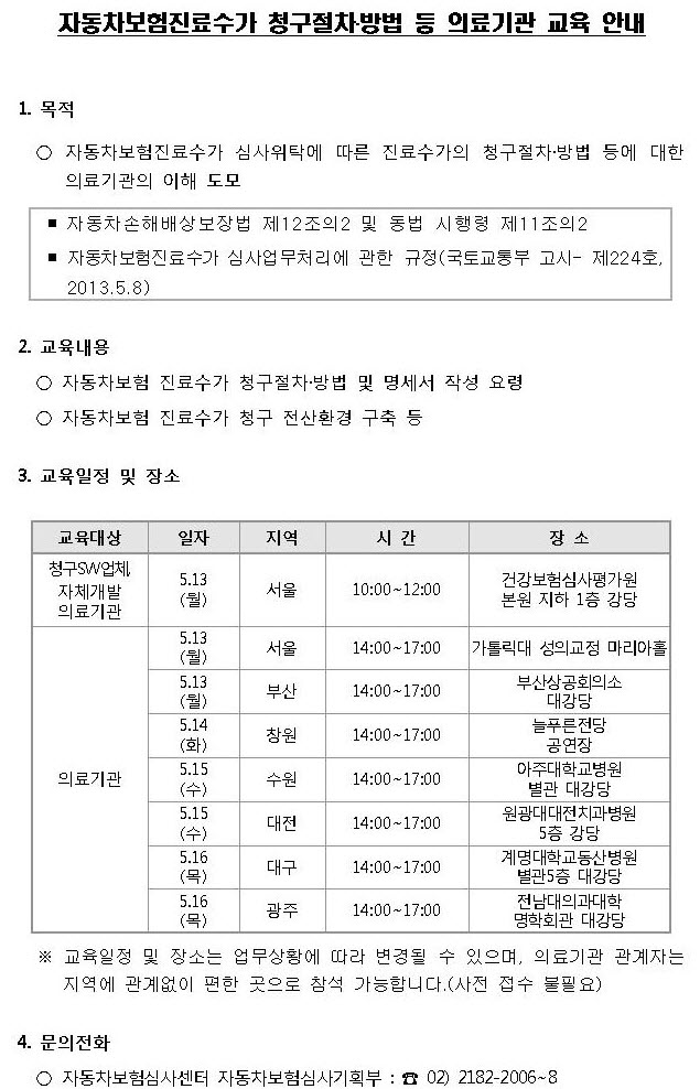 [½ÉÆò¿ø]ÀÚµ¿Â÷º¸ÇèÁø·á¼ö°¡ û±¸ÀýÂ÷¡¤¹æ¹ý µî ÀÇ·á±â°ü ±³À° ¾È³»