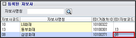 ¨è ÇÏ´ÜÀÇ µî·ÏµÈ ÀÚº¸»ç¸¦ Ŭ¸¯ÇÏ¿©, »ó´ÜÀÇ EDI ÀÚº¸ÄÚµå¿Í ÀÏÄ¡ÇÏ°Ô ÀÔ·ÂÇѵÚ