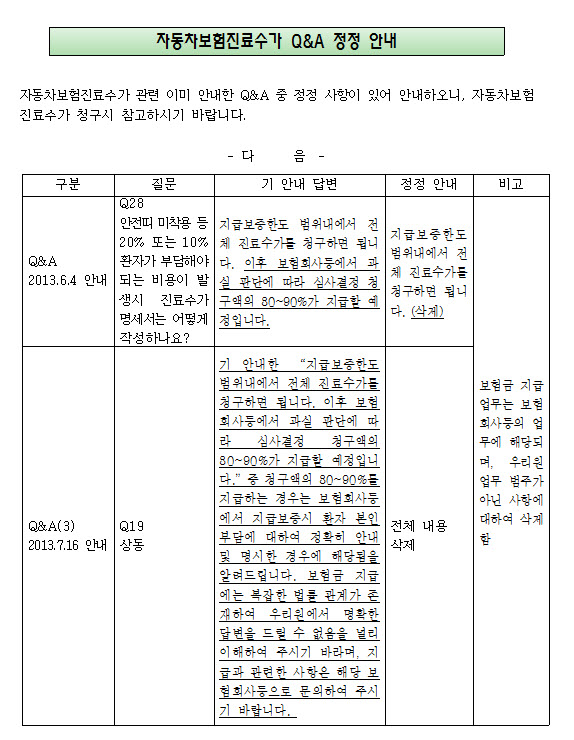 [½ÉÆò¿ø]ÀÚµ¿Â÷º¸Çè Áø·á¼ö°¡ °ü·Ã Q&A Á¤Á¤ ¾È³»