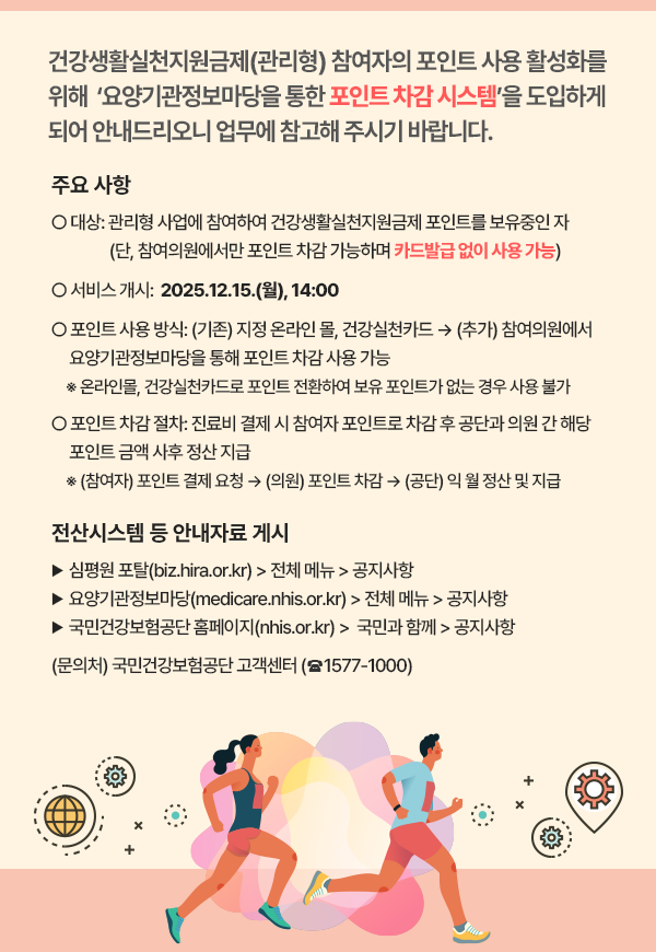 °Ç°»ýȰ½ÇõÁö¿ø±ÝÁ¦ ½Ã¹ü»ç¾÷ °ü¸®Çü Æ÷ÀÎÆ® Â÷°¨½Ã½ºÅÛ ¼ºñ½º °³½Ã ¾È³»°¡ ÀÖ¾î °Ô½ÃÇÕ´Ï´Ù.