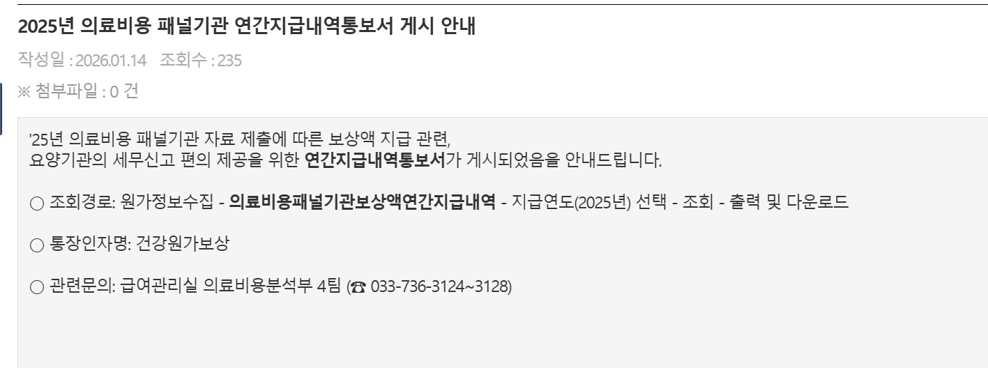 [¿ä¾ç±â°üÁ¤º¸¸¶´ç] 2025³â ÀÇ·áºñ¿ë ÆÐ³Î±â°ü ¿¬°£Áö±Þ³»¿ªÅ뺸¼­ °Ô½Ã ¾È³»