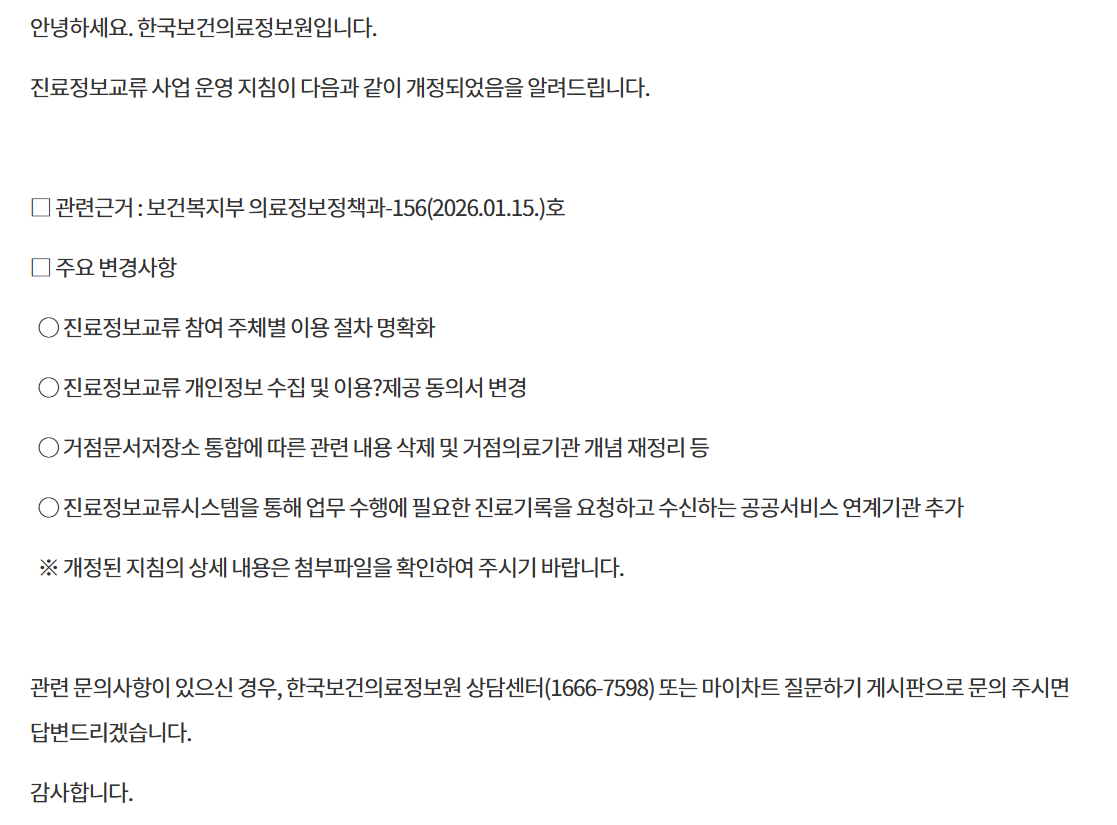 ¾È³çÇϼ¼¿ä.´Ù¼Ø¸ÞµðÄÉ¾î °ü¸®ÀÚÀÔ´Ï´Ù. º¸°Çº¹ÁöºÎ ¸¶ÀÌÂ÷Æ® °øÁö»çÇ׿¡ Áø·áÁ¤º¸±³·ù »ç¾÷ ¿î¿µ Áöħ °³Á¤ ¾È³»°¡ ÀÖ¾î °Ô½ÃÇÕ´Ï´Ù. °ü·Ã¾÷¹«¿¡ Âü°íÇϽñ⠹ٶø´Ï´Ù.