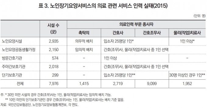 ¼±¿ì´ö À§¿øÀº ¡°ÃËŹÀÇ Àǹ« ¹èÄ¡°¡ ÇÊ¿äÇÑ ³ëÀοä¾ç½Ã¼³Àº 2015³âµµ ¸» ±âÁØ 2935°÷ÀÌÁö¸¸ ÃËŹÀÇ ¼ö´Â 1415¸í, °£È£»ç´Â 2719¸í, °£È£Á¶¹«»ç ¼ö´Â 9099¸í Á¤µµ¿´´Ù¡±¸ç ¡°°á±¹ ÀǷἺñ½º¸¦ Á¦´ë·Î Á¦°øÇÏ´Â Àå±â¿ä¾ç±â°üÀÌ »ó´çÈ÷ ºÎÁ·ÇÑ °ÍÀ¸·Î º¸Àδ١±°í ºÐ¼®Çß´Ù.