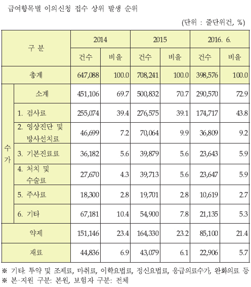 Åõ¾à¡¤Á¶Á¦·á¸¦ ºñ·ÔÇÑ ¸¶Ãë·á, ÀÌÇпä¹ý·á, Á¤½Å¿ä¹ý·á, ÀÀ±ÞÀÇ·á¼ö°¡, ¿ÏÈÀÇ·á´Â ¸ðµÎ ÇÕÇØ 5.3% ºñÁßÀ¸·Î ÀÛ¾Ò°í Ä¡·áÀç·á »è°¨À¸·Î ÀÎÇÑ ÀÌÀǽÅû Á¢¼ö´Â 5.7% ¼öÁØÀ̾ú´Ù. ƯÈ÷ ¾àÁ¦ÀÇ °æ¿ì ´Üµ¶ Ç׸ñÀ¸·Î 21.4%¸¦ Â÷ÁöÇØ »è°¨¿¡ ÀÌÀǸ¦ Á¦±âÇÏ´Â ºñÀ²ÀÌ ³ôÀº ÆíÀ̾ú´Ù.