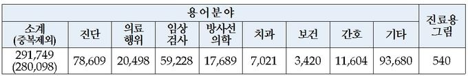 À̹ø °³Á¤¾È¿¡´Â Á¾Àü ´ëºñ ÀÓ»ó°Ë»ç‧¹æ»ç¼±ÀÇÇÐ‧Ä¡°ú‧°£È£ µî 8°³ ºÎ¹®¿¡¼ ½Å±Ô ¿ë¾î 5¸¸1000°Ç, º¯°æ¿ë¾î 1¸¸5000°Ç, »èÁ¦¿ë¾î 1000°ÇÀÌ ¹Ý¿µµÆ´Ù.