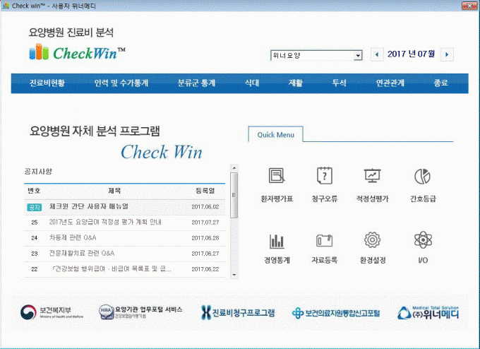 º¸Çè û±¸ ½É»ç ±³À°À» Àü¹®À¸·Î Çϰí ÀÖ´Â ¢ßÀ§³Ê¸Þµð°¡ °³¹ßÇÑ ¡®Ã¼Å©À©(checkWin¢â)¡¯Àº ÀÌ °°Àº Áø·á ÇöÀåÀÇ °í¹ÎÀ» ¹Ý¿µÇØ °³¹ßµÈ ¿ä¾çº´¿ø Æ¯È °æ¿µÁ¡°Ë ÇÁ·Î±×·¥ÀÌ´Ù.