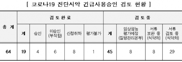 ½Ä¾àó¿¡ µû¸£¸é ½Åû °Ç¼ö ÃÑ 64°Ç Áß 19°ÇÀº °ËÅä°¡ ¿Ï·áµÅ 4°ÇÀº ±ä±Þ»ç¿ë ½ÂÀÎ, 6°ÇÀº ¼º´É ¹ÌÈíÀ¸·Î ºÎÀûÇÕ, 1°ÇÀº ÀÓ»ó¼º´ÉÆò°¡ ºÒ°¡, 8°ÇÀº ¾÷ü°¡ ½ÅûÀ» ÃëÇÏÇß´Ù.