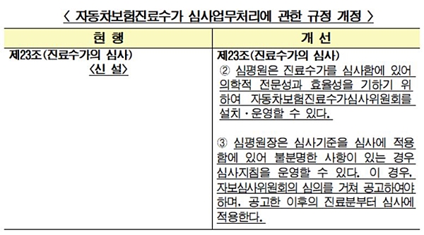 ±¸Ã¼ÀûÀ¸·Î´Â ½ÉÆò¿ø »êÇÏ¿¡ ÀÚº¸ Áø·á¼ö°¡ ½É»ç¸¦ À§ÇÑ 'ÀÚµ¿Â÷º¸ÇèÁø·á¼ö°¡½É»çÀ§¿øÈ¸'¸¦ ¼³Ä¡·¿î¿µÇÏ´Â ÇÑÆí, ½ÉÆò¿øÀÌ ÀÌ À§¿øÈ¸ ½ÉÀǸ¦ °ÅÃÄ ¼¼ºÎ½É»ç±âÁØ(½É»çÁöħ)À» ¸¶·Ã·¿î¿µÇÒ ¼ö ÀÖ°Ô ÇÑ´Ù´Â °èȹÀÌ´Ù.