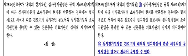 ÇöÁöÈ®ÀÎ ½É»ç È¿À²È¸¦ ±âÄ¡·Î, ÀÚº¸ Áø·á¼ö°¡ ³»¿ª ÇöÁöÈ®Àΰú °ü·ÃÇÑ ¼¼ºÎÀûÀÎ ¿î¿µ»çÇ×À» ½ÉÆò¿øÀåÀÌ º°µµ·Î Á¤ÇØ ¿î¿µÇÒ ¼ö ÀÖµµ·Ï ¾÷¹«±ÔÁ¤À» ½Å¼³ÇÑ °ÍÀÌ ÁÖµÈ ³»¿ëÀÌ´Ù.