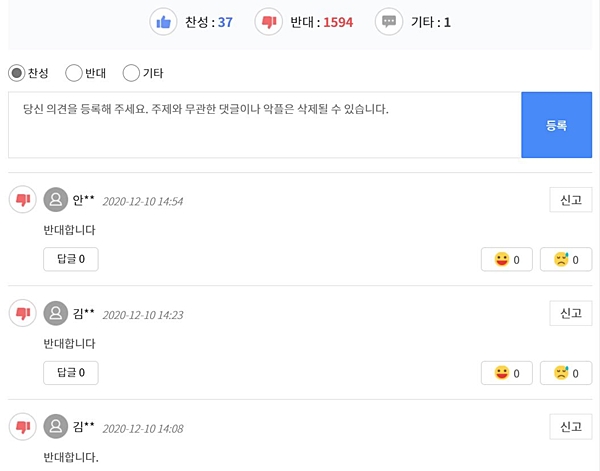 °³Á¤¾È¿¡ ´ëÇÑ Àǰ߼ö·ÅÀ» À§ÇØ Á¤ºÎ°¡ ¿î¿µ ÁßÀÎ ¿Â¶óÀÎ 'ÀüÀÚ°øÃ»È¸' »çÀÌÆ®¿¡¼µµ ¹Ý´ë ÀǰßÀÌ ÁÙÀ» ÀÕ°í ÀÖ´Ù. ÀÔ¹ý ¿¹°í º¸¸§¿© ¸¸ÀÎ 10ÀÏ ¿ÀÈÄ ÇöÀç 1600¿©°³¿¡ ´ÞÇÏ´Â ¹Ý´ëÀǰßÀÌ ´Þ·È´Ù.