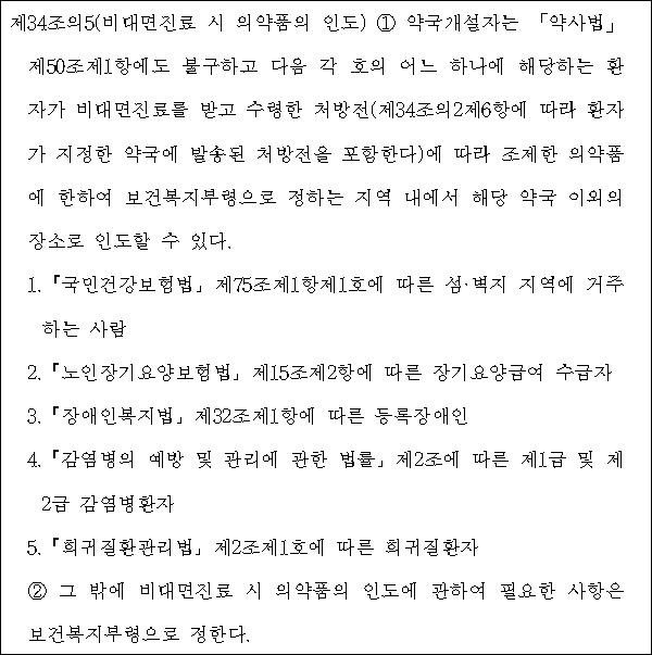 ¾à»ç(¾à±¹°³¼³ÀÚ)´Â Àǻ簡 ¹ß±ÞÇÑ ºñ´ë¸éÁø·á ȯÀÚ Ã³¹æÀü¿¡ µû¶ó ¾àÀ» Á¶Á¦ÇÒ ¶§ 'º¹ÁöºÎ°¡ Á¤ÇÑ Áö¿ª ¾È'¿¡¼ ¾à±¹ ¿Ü Àå¼Ò·Î 󹿾àÀ» ÀεµÇÒ ¼ö ÀÖ´Ù.