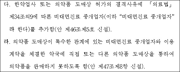 ÀÇ·á¹ý °³Á¤¾È°ú ÇÔ²² º¹ÁöÀ§¸¦ Åë°úÇÑ ¾à»ç¹ý °³Á¤¾ÈÀº ºñ´ë¸éÁø·á Áß°³ Ç÷§ÆûÀ» 'ÇѾà¾÷»ç ¶Ç´Â ÀǾàǰ µµ¸Å»ó Çã°¡ °á°Ý»çÀ¯'¿¡ Ãß°¡Çß´Ù. ÀǾàǰ ÆÇ¸ÅÁú¼ È®¸³ÀÌ ¸ñÇ¥´Ù.