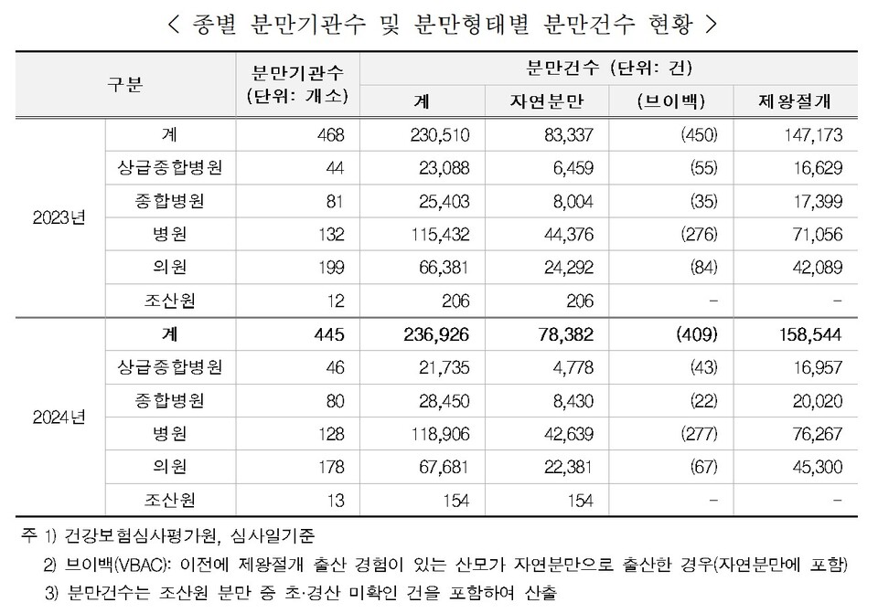 [ÀÇÇнŹ®·Àϰ£º¸»ç=ÀÌÀç¿ø ±âÀÚ] Áö³ÇØ ºÐ¸¸ °Ç¼ö´Â ´Ã¾úÀ¸³ª ºÐ¸¸±â°ü¼ö´Â Àü³âº¸´Ù ¾à 5%(23°³)°¡ ÁÙ¾îµç °ÍÀ¸·Î ³ªÅ¸³ª »êºÎÀΰú ºÐ¸¸ ±âÇÇ Çö»óÀ» °í½º¶õÈ÷ º¸¿©Áá´Ù.